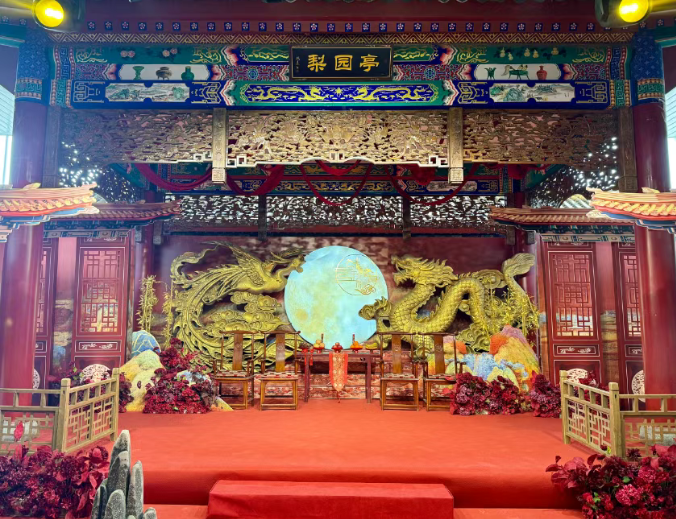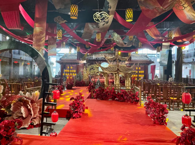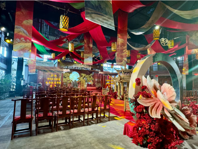景观核心区域,包括阁楼听雨、状元楼、福天洞地,运筑建明清时期亭台楼阁,小桥流水,配以独特牡丹造型餐台,使宾客再享受美食的同时,切身感受到牡丹文化的熏染。