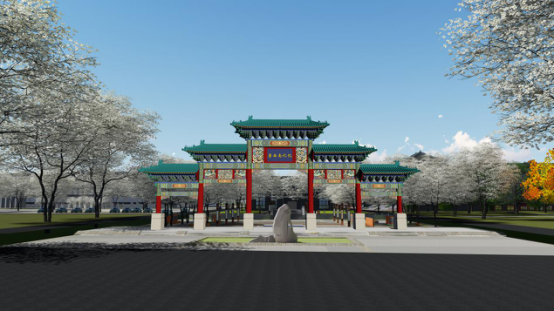 中轴线广场占地约3万平方米,以展示菏泽悠久、灿烂历史文化为主要内容,规划建设六柱五间十一楼柱不出头牌坊、万民坊、国色楼等。让游客踏入景区之始,古朴厚重的鲁西南风情迎面而来。