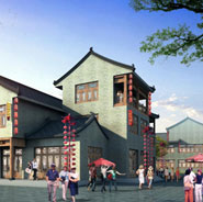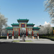 中轴线广场占地约3万平方米,以展示菏泽悠久、灿烂历史文化为主要内容,规划建设六柱五间十一楼柱不出头牌坊、万民坊、国色楼等。让游客踏入景区之始,古朴厚重的鲁西南风情迎